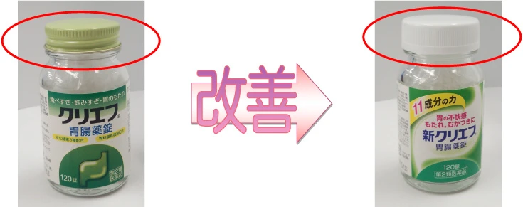 商品リニューアルの際、今までの金属のフタからプラスチックのフタへ変更し、温度変化の影響を受けにくく、どの年代の方にも開けやすいキャップへと変更しました。