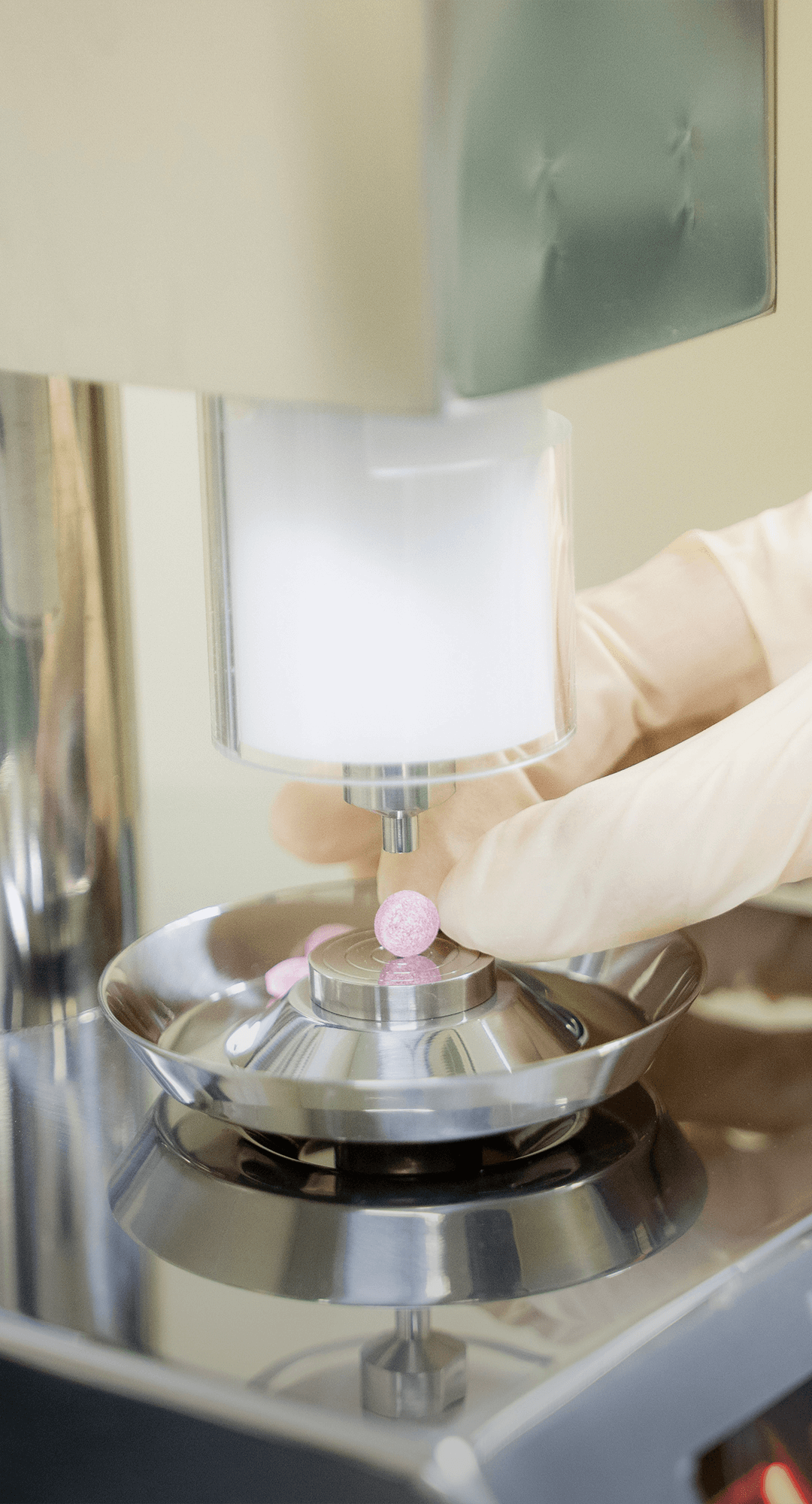 いま私が担当しているのは、コーティングと呼ばれる工程です。薬を服用する際の味や匂いといった不快感を抑え、体内で適切なタイミングで薬が作用しはじめるよう、製造された錠剤に薄い膜をつけていきます。製造の最終工程であるため、異物混入や不具合があれば、最初から作り直し。そのため、手順書に沿って丁寧に作業を進めることを心がけています。将来の目標は、誰かの健康に貢献できる新しい薬の開発に携わること。そのために、まずは製造工程での仕事をきっちりと身につけていければと思っています。