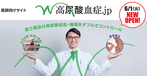 医薬品の研究開発から製造・販売までを行う複合型医薬品企業の株式会社富士薬品(本社:埼玉県さいたま市 代表取締役社長 高柳 昌幸、以下「富士薬品」)は、本日6月1日(火)に医療従事者向けサイト「高尿酸血症.jp」を、6月7日(月)に一般向けサイト「気になる尿酸値.jp」をそれぞれオープンします。