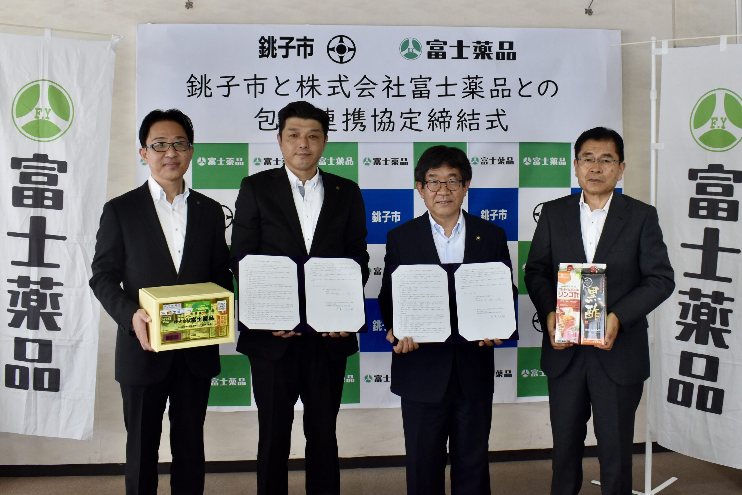 本協定に基づき富士薬品は、主力事業の配置薬による支援を通じて、銚子市の地域住民の「健康づくり」を後押しし、地域社会の活性化に寄与することを目指します。